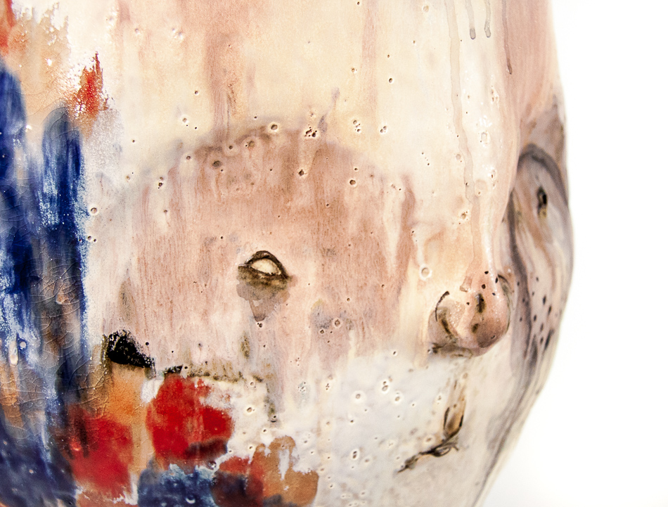 Burn it | ceramic, glaze, engobe, glass, thread | 37 x 18 x 14 inches